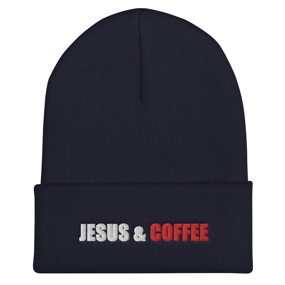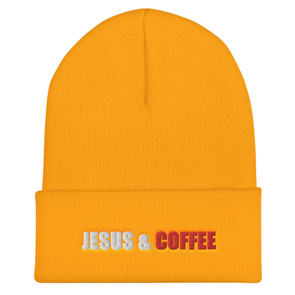 • Load image into Gallery viewer, Running on Jesus | Jesus Girl | Christian | Fall Hat | Jesus and Coffee| Cuffed Beanie